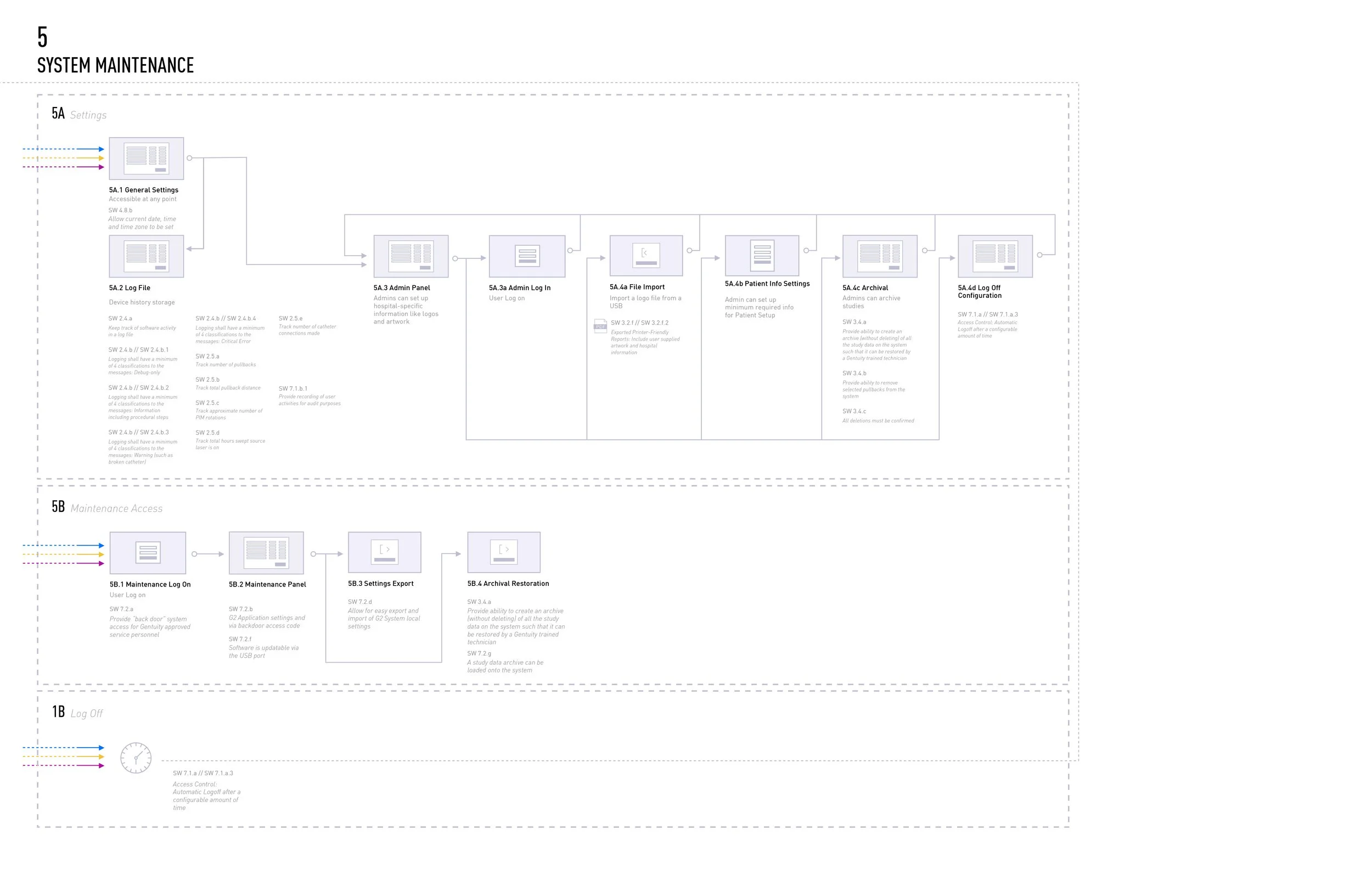 Based on what we learned from our observational studies, we created user experience maps for each user group based on their experience with the products they had already been using, documenting their step from start to finish. Then, we identified design opportunity areas.